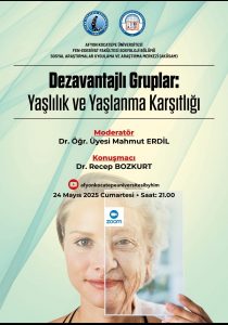 Dezavantajlı gruplar Seminerleri 1 için Dr. Recep Bozkurt yaşlılık ve yaşlanma konularının dezavantajlılık açısından değerlendirilmesini yaptı. Yaşlanmanın etkilerini azaltmak için ve dezavantajlılık durumlarının iyileştirilmesi için gereken adımlardan bahsetti. Ayrıca Tazelenme Üniversitesi açılmasının yaşlılık bilimi için ve özelikle yaşlanmayla birlikte ortaya çıkan sorunların çözümü konusunda önemli bir kurum olduğuna değindi.